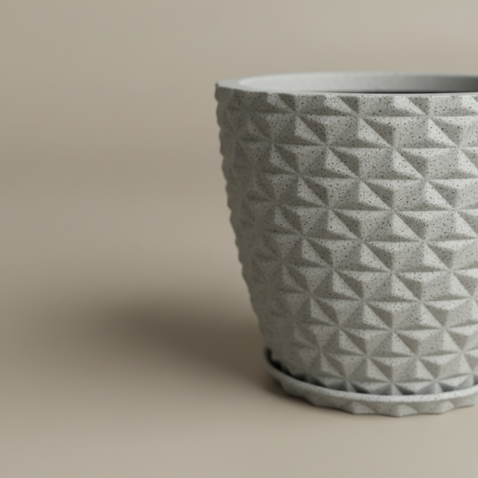 Detalhes que transformam. Texturas orgânicas e acabamentos minerais desenhados para elevar mesas, estantes e nichos.