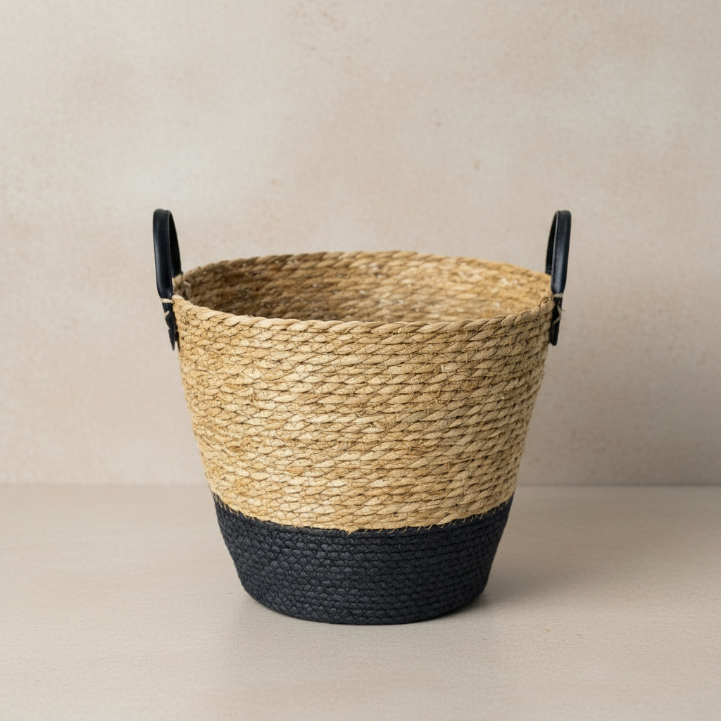 O Duo de Cestos Maré é uma exploração sobre equilíbrio e textura. Parte da nossa Série Natureza, este conjunto em palha Seagrass destaca-se pelo seu design bicolor, onde o tom natural da fibra encontra uma base preta profunda, conferindo um toque de modernidade industrial à estética rústica.