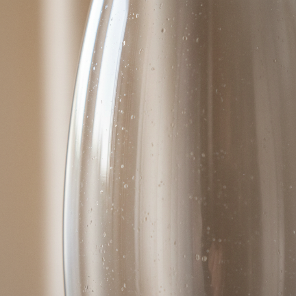 O Vaso Cocoon Glass é uma celebração da forma orgânica em sua máxima pureza. Parte da nossa Série Fluidez, sua silhueta ovoidal suaviza as linhas do ambiente, criando uma redoma de vidro cristalino que emoldura e protege a beleza natural das suas flores.